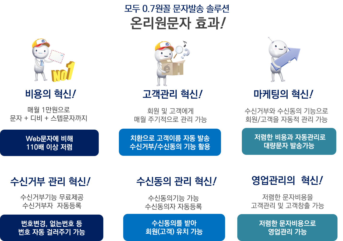온리원문자는 문자발송 솔루션입니다. 본 솔루션을 통해 발송된 문자내용은 발송자가 제공하는 정보로서 이를 신뢰하여 취한 조치에 대해 책임지지 않습니다.