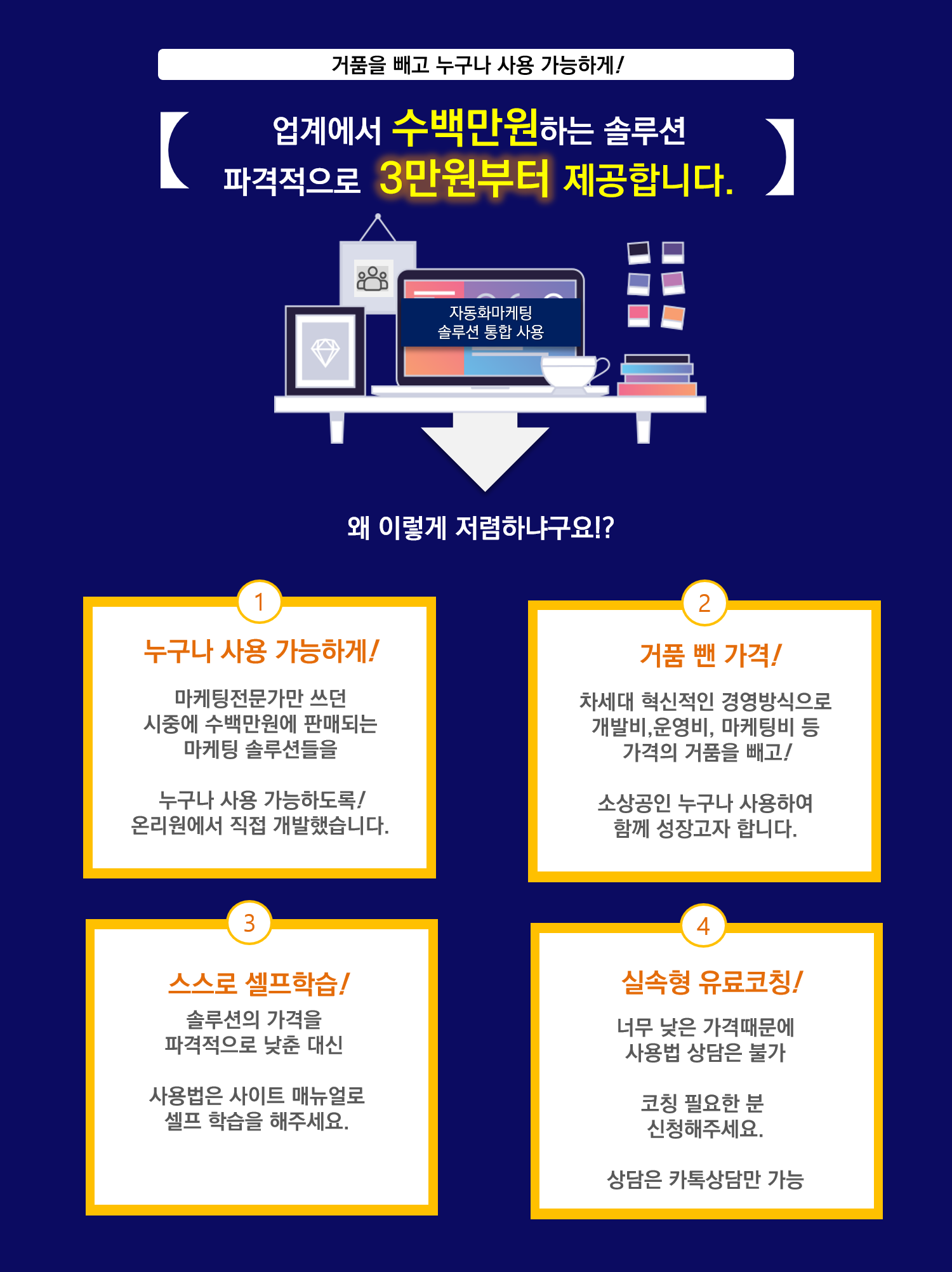 사이트명:아이엠프로(IAMPRO) 회사명:(주)온리원셀링 공급사:온리원연구소 사업자번호:119-86-03213 대표:송조은 주소:서울시 송파구 양재대로60길 3-17 태경빌딩2층 개인정보책임자:이루진 이메일:1pagebook@naver.com 고객센터 번호:0502-0512-0100 통신판매신고번호:2019-경기광명-0162 도메인:kiam.kr Copyright©온리원셀링.All Rights Reserved. 호스팅: (주)카페24